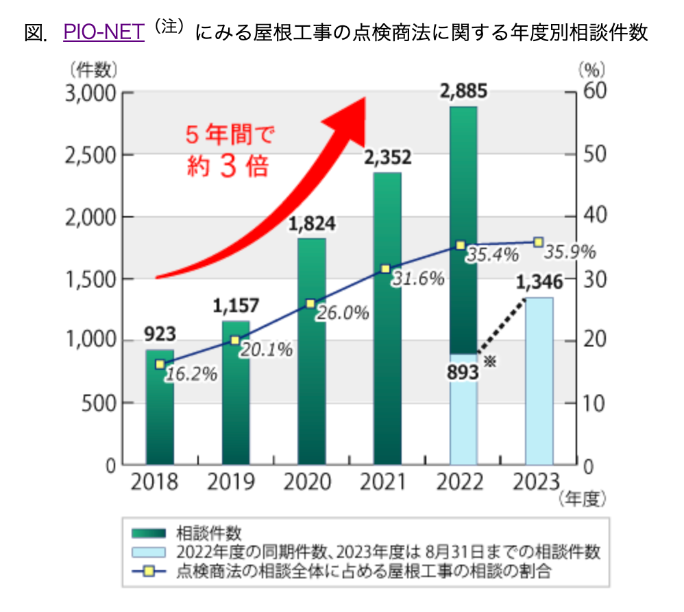 PIO-NET(全国消費生活情報ネットワークシステム)では、上記のようないわゆる「点検商法」での相談件数が年々増えています。